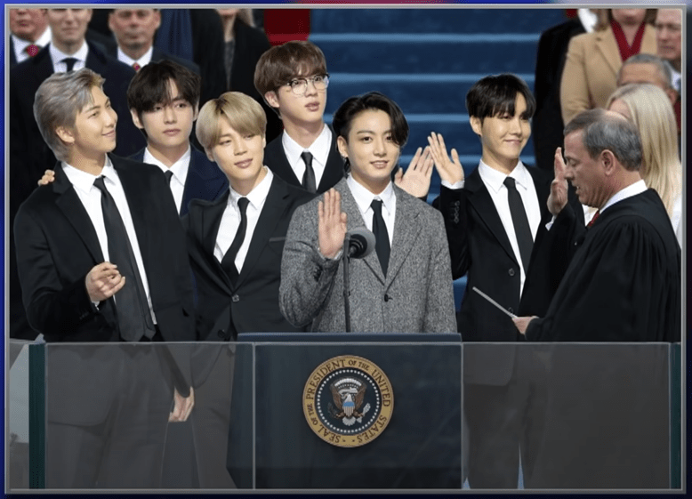 WASHINGTON D.C.—Little did Late Night TV show personality Steven Colbert know, rally sizes do, in fact, determine the next president of the United States. Despite achieving the highest popular vote and legitimate electoral college victory by the Biden-Harris campaign, BTS members were recently sworn-in to serve as the next leaders of the Free World.